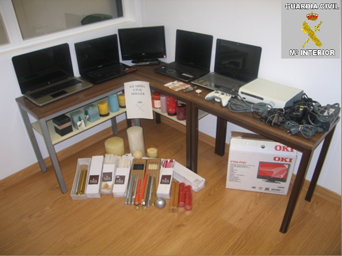 Tras la detención, la Guardia Civil ha recuperado gran parte de los efectos sustraídos, entre estos, cuatro ordenadores portátiles, dos relojes, una televisión, una consola de videojuegos y 100 euros en efectivo.