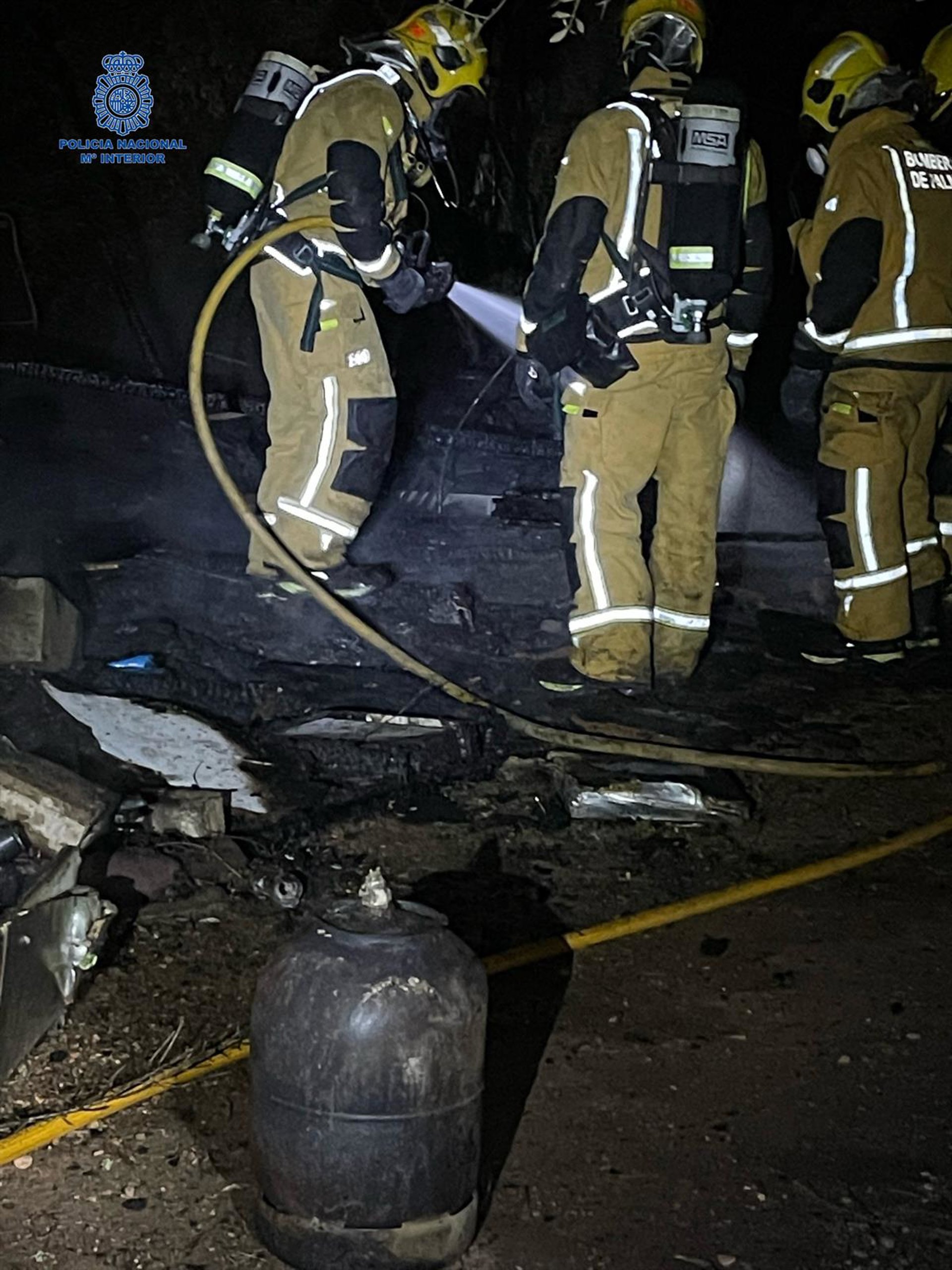 Ante esto, la mujer solicitó la presencia de los servicios de emergencias y varias patrullas de la Policía Nacional y de bomberos se personaron en el lugar, teniendo que desalojar las casas colindantes por riesgo de propagación del fuego.
