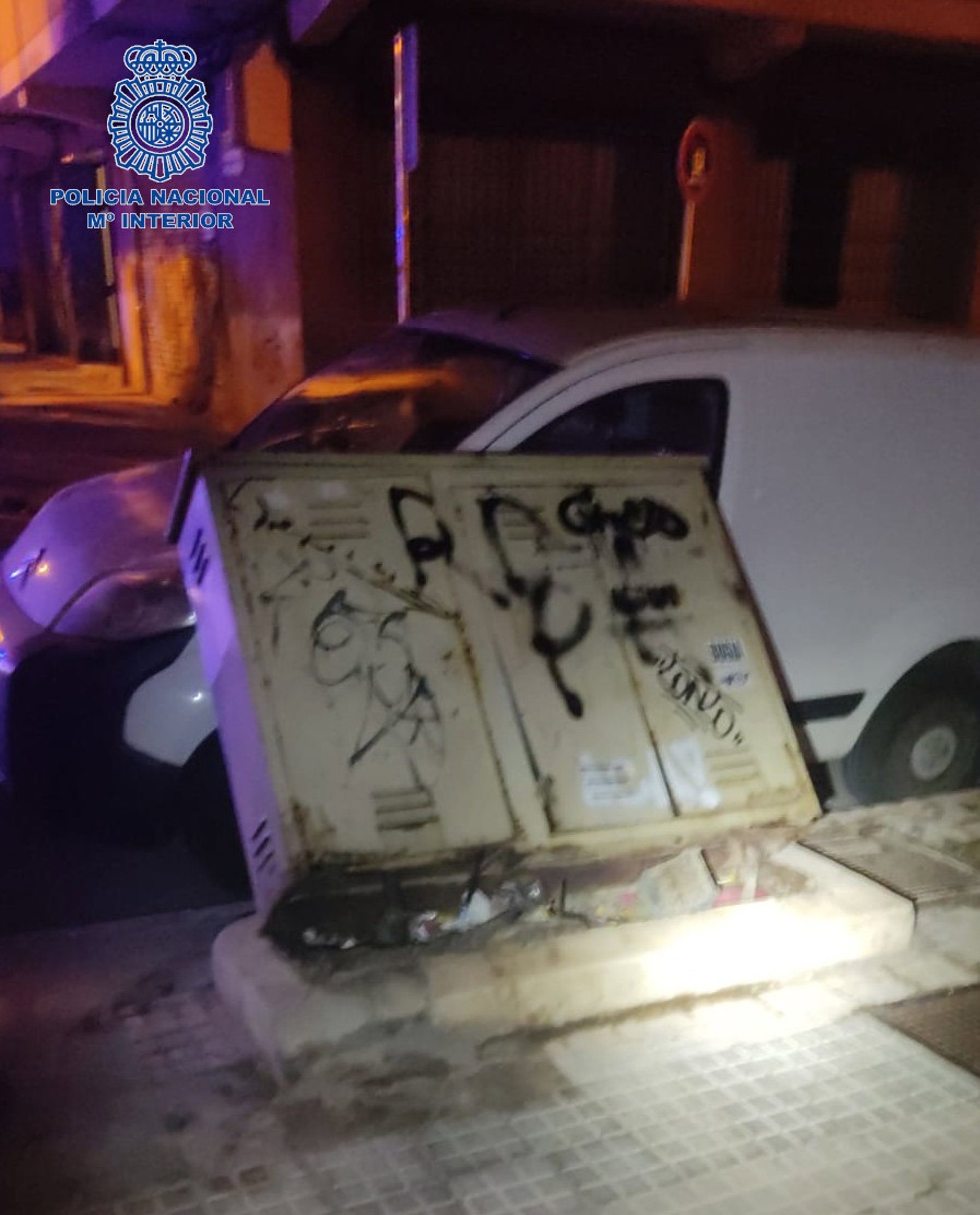 Varias patrullas se desplazaron al lugar, donde algunos testigos les indicaron el camino que habían tomado los jóvenes. Los policías fueron en su busca y les vieron golpeando un transformador de luz, que arrancaron del suelo y empujaron contra un vehículo. Fueron interceptados por los agentes.