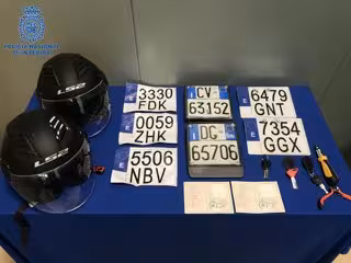 Tras practicarse las primeras detenciones, se efectuó un registro del domicilio en el que se localizaron documentos de identidad italianos falsas, cinco placas de matrículas falsas y dos motocicletas utilizadas para cometer los robos.