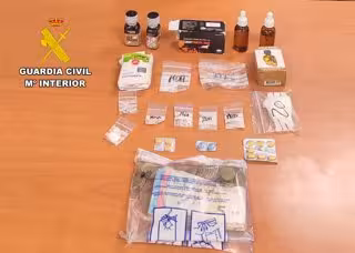 La Guardia Civil ha arrestado a un hombre, de 35 años, que, presuntamente, llevaba en su coche distintas sustancias estupefacientes, viagras, distinto material para su venta y 780 euros en efectivo, cuando conducía por una carretera de Bendinat --en el municipio de Calvià--.