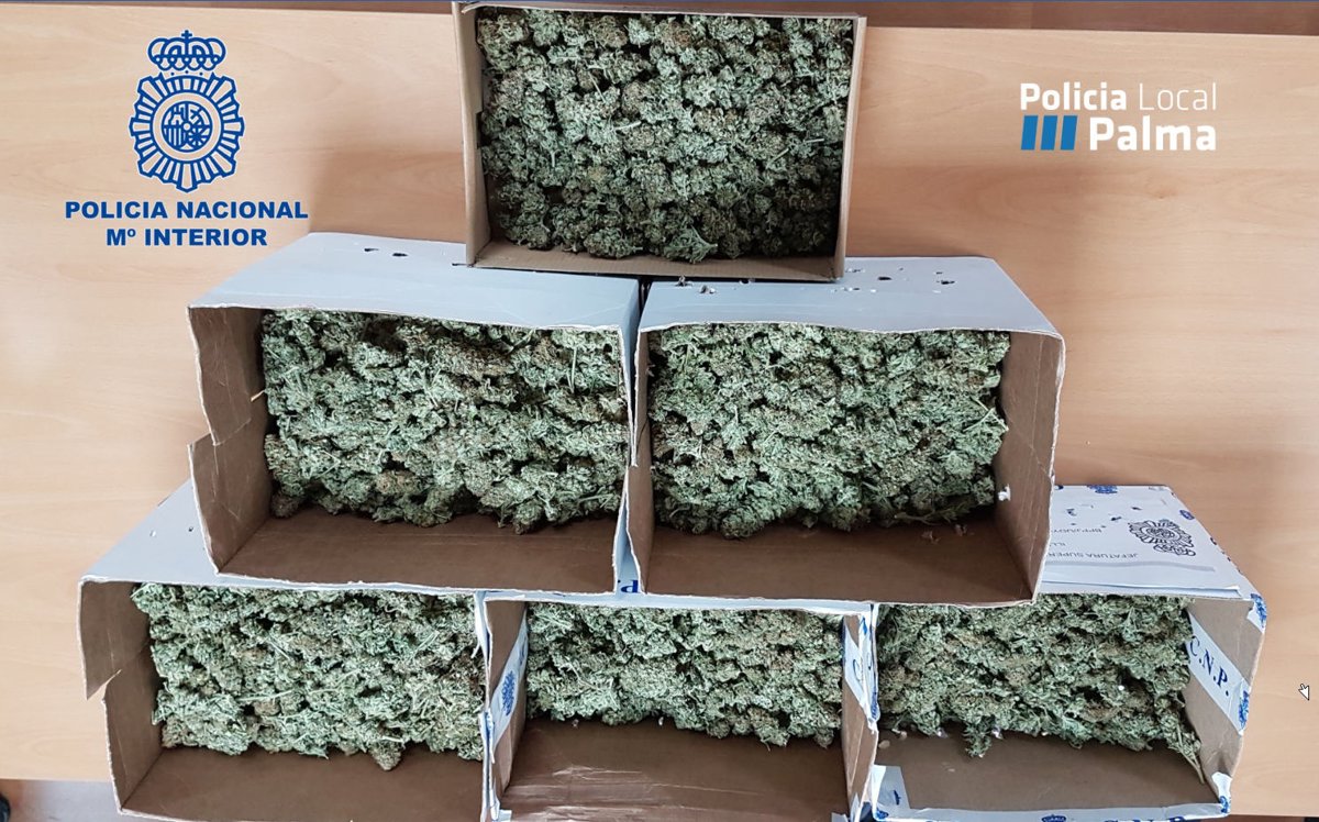 Según ha informado la Policía Nacional en un comunicado, la colaboración que existe entre la Policía Nacional y la Policía Local en Palma ha posibilitado el desmantelamiento de un punto de cultivo y producción de marihuana, para su posterior distribución, interviniendo 6,5 kilos de cogollos, listo para su venta.