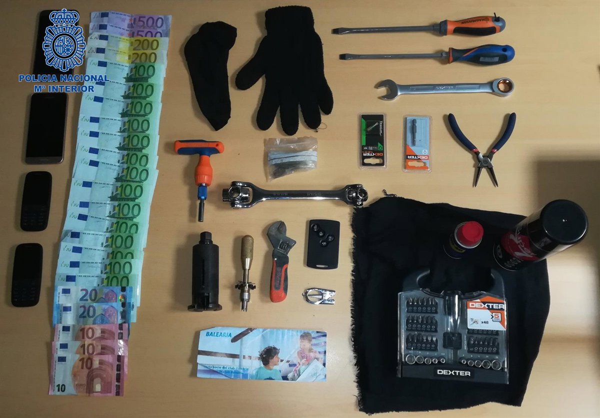 Los detenidos portaban 2.700 euros en efectivo y pese a haber manifestado a los agentes que viajaban a Mallorca de vacaciones, portaban un pasaje de barco solo de ida y ocultaban en el turismo en el que se desplazaban una serie de herramientas ocultas en zonas no visibles, algunas de ellas específicas para el forzamiento de cierres de locales, análogas a las abandonadas en los hechos cometidos en Campello.