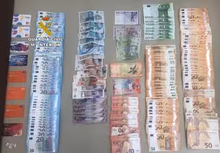 En el registro efectuado en uno de los vehículos utilizados por los delincuentes, los agentes encontraron 8.000 euros en metálico que se hallaban ocultos en un habitáculo bajo el asiento, así mismo se les intervino varias tarjetas de crédito sustraídas.