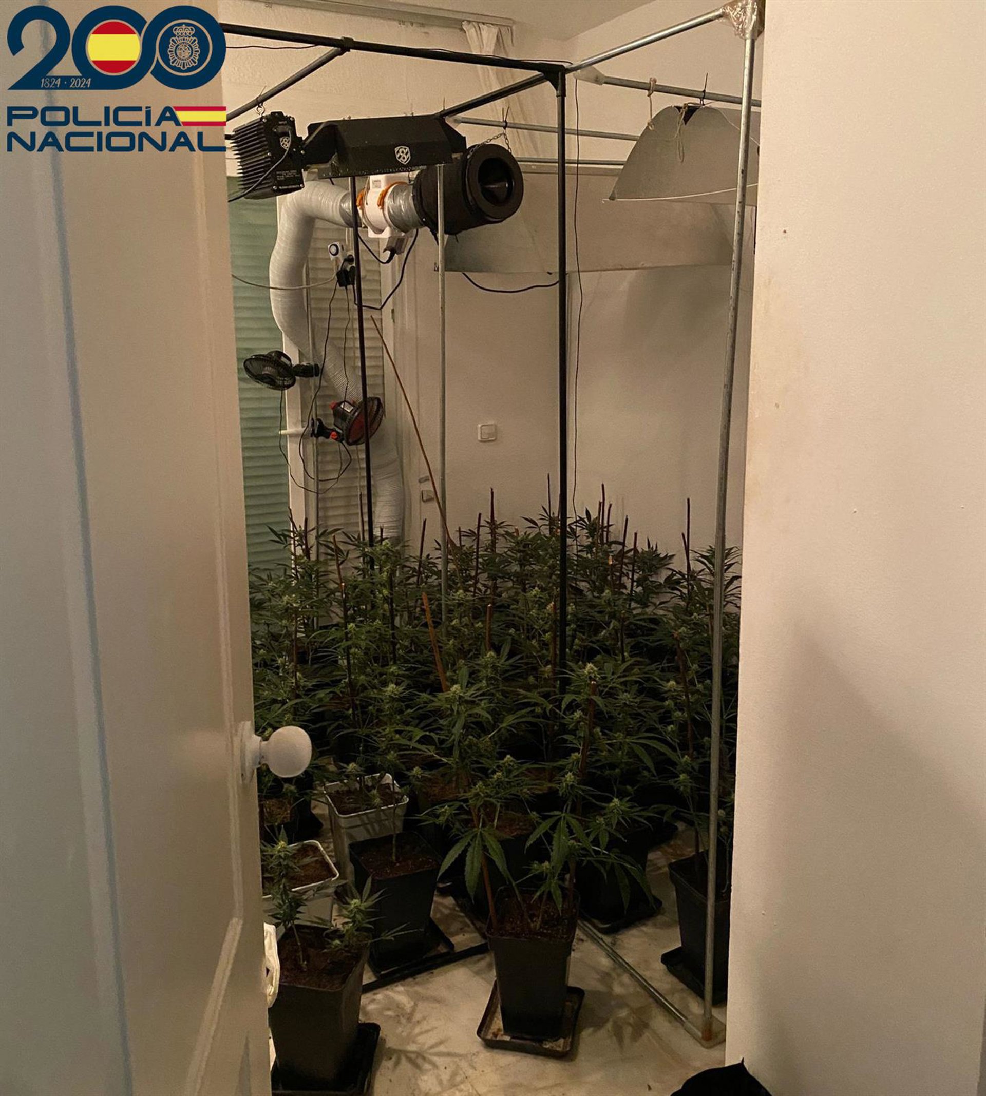 Al entrar, comprobaron que en una de las habitaciones había una plantación de marihuana 'indoor' en pleno funcionamiento, con un sistema de extracción de olores y lámparas halógenas, así como una gran cantidad de macetas con plantas de marihuana.