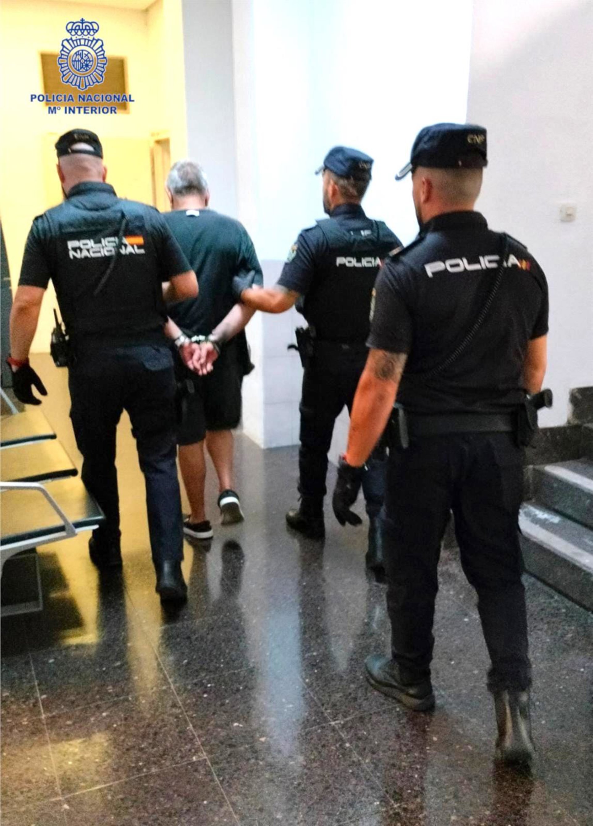 Agentes de la Policía Nacional con el detenido como presunto autor del robo a una mujer de avanzada edad en Palma - POLICÍA NACIONAL