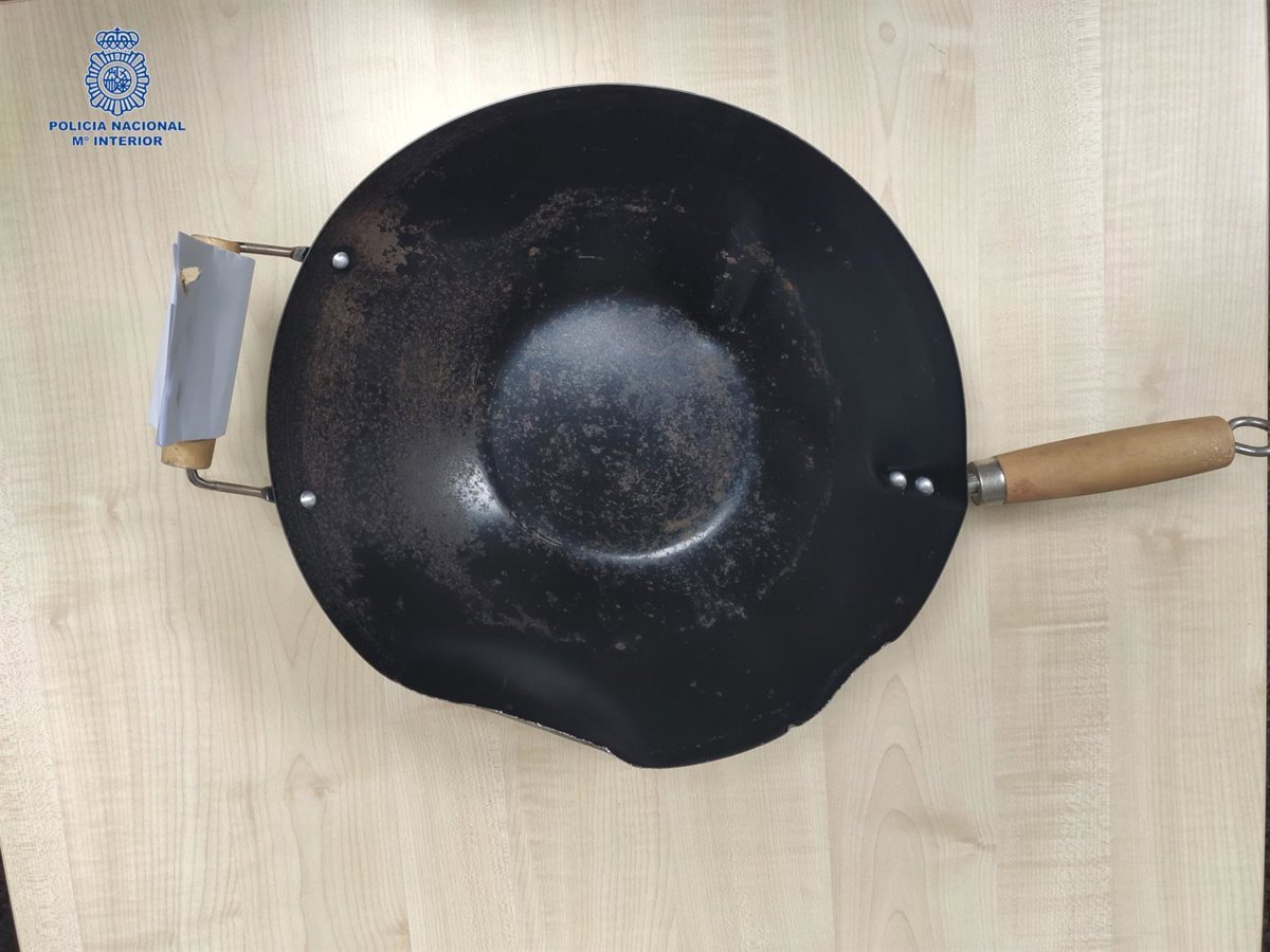Sartén utilizada por el detenido en la reyerta entre dos grupos de jóvenes el pasado domingo en Palma. - POLICÍA