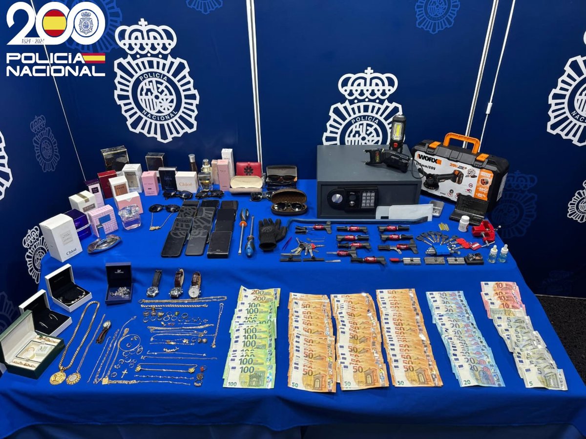 Los agentes recuperaron alrededor de 9.600 euros en billetes fraccionados, un gran número de objetos personales de gran valor, joyas, relojes, colonias y gafas de marca.