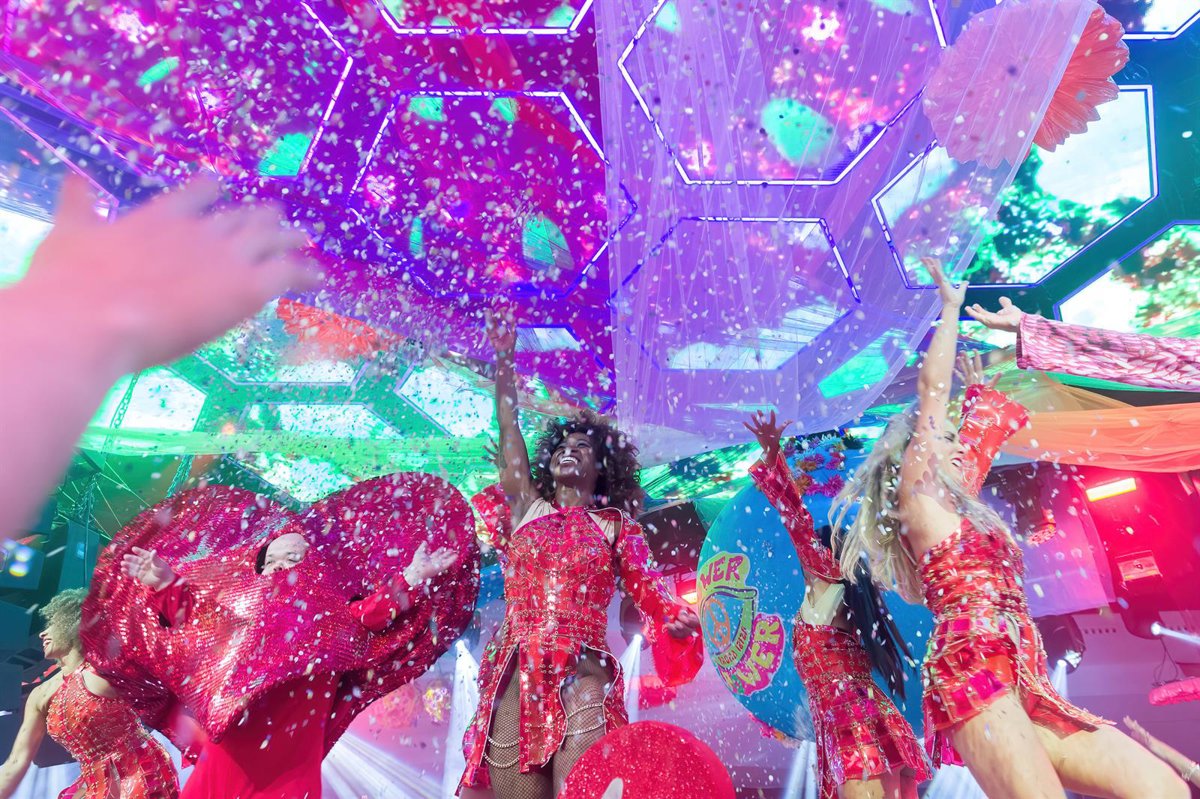 Archivo - Tres personas animan la fiesta Flower Power con confeti, en la discoteca Pacha Ibiza - Germán Lama - Europa Press - Archivo