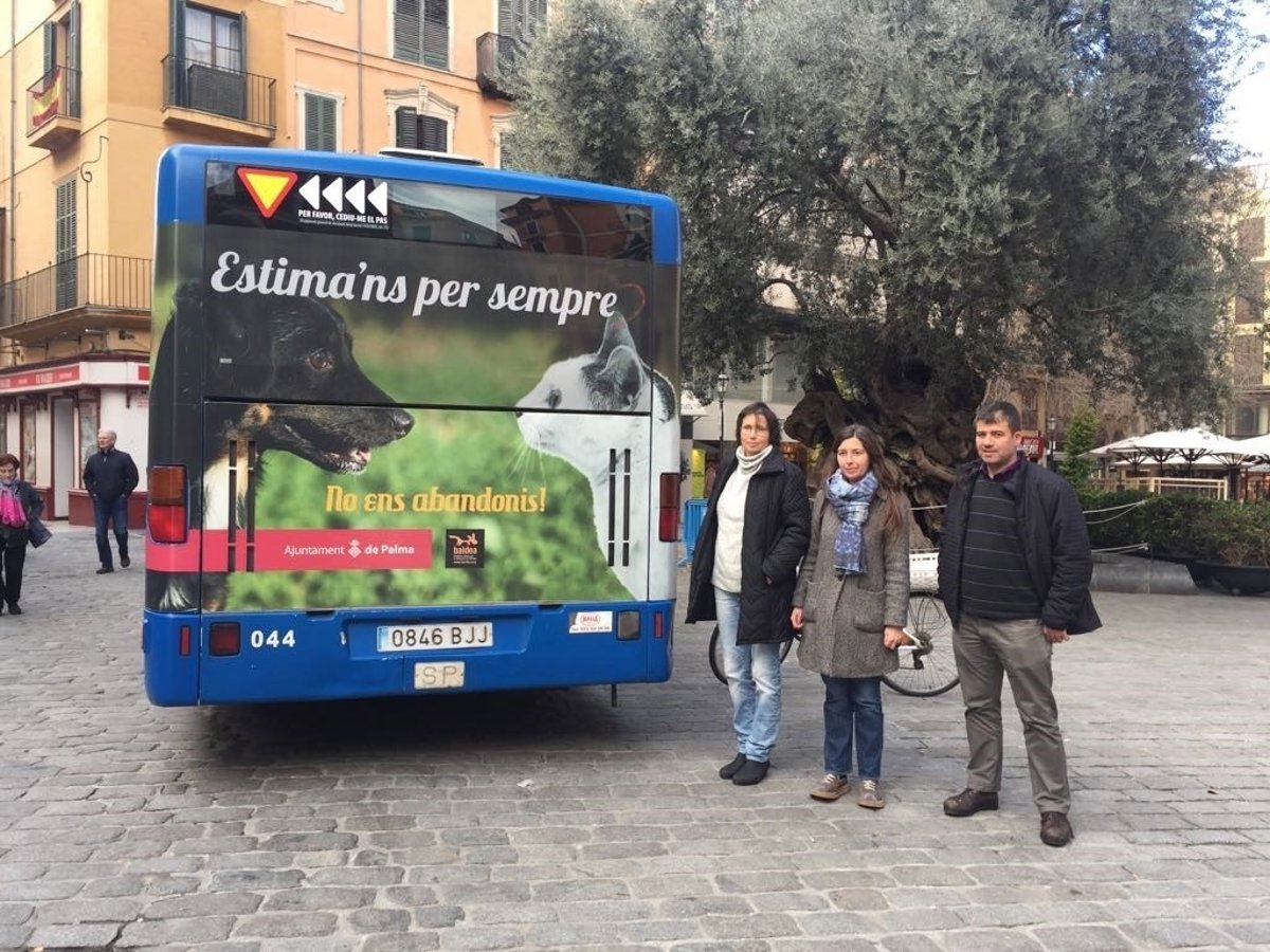 Dos buses de la Empresa Municipal de Transportes (EMT) difundirán en los próximos messes la campaña del Ayuntamiento de Palma y Baldea 'Quiérenos por siempre jamás. No nos abandones' contra el abandono de animales de compañía.