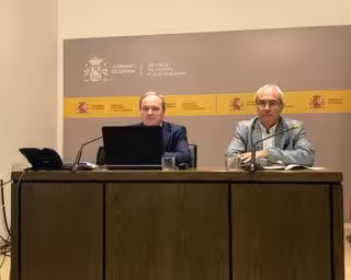 El subdirector General de Planificación y Gestión del Espectro Radioeléctrico del Ministerio de Economía y Empresa, Antonio Fernández-Paniagua, y el delegado del Gobierno en Baleares en funciones, Ramon Morey, en rueda de prensa - EUROPA PRESS