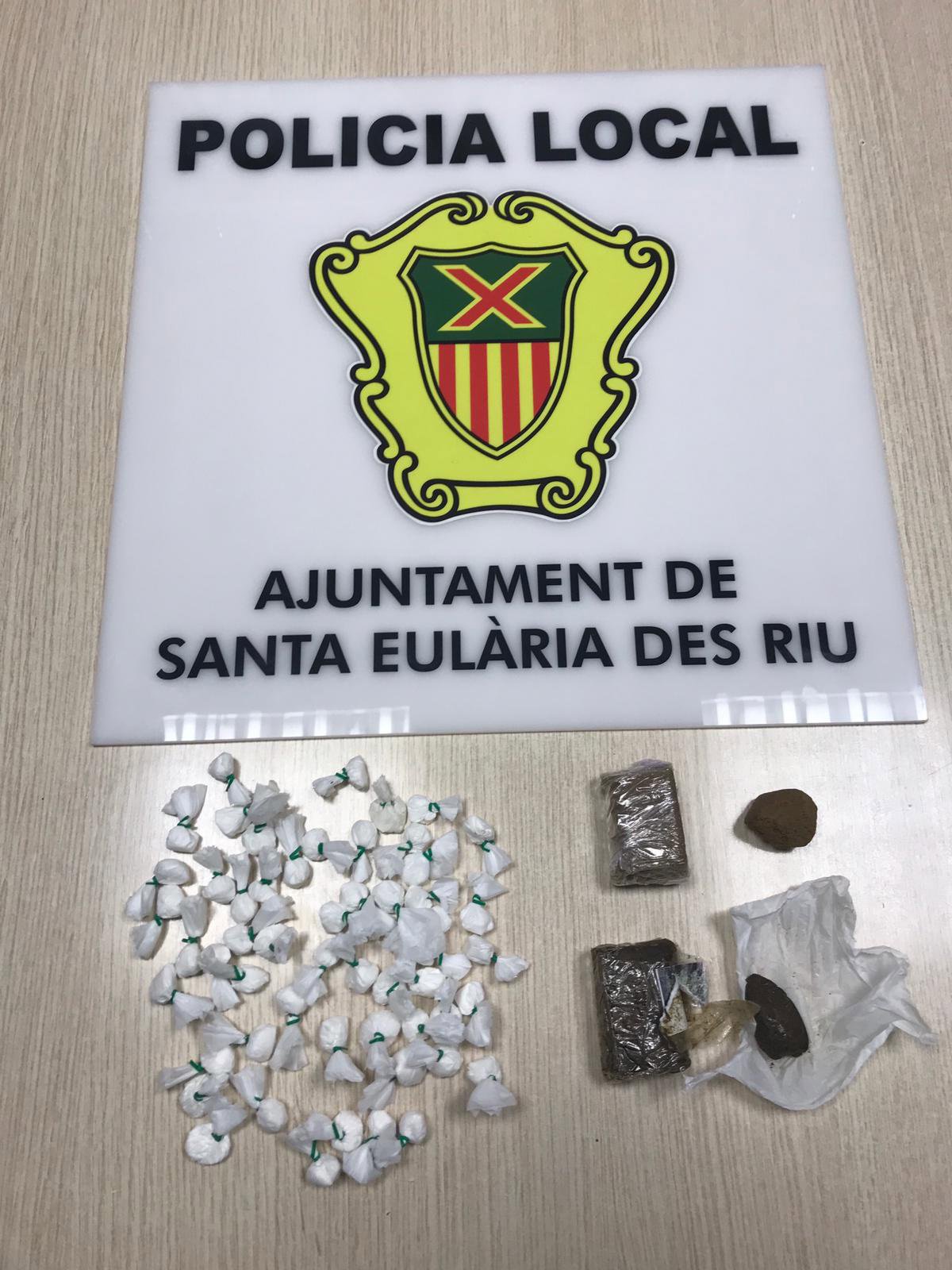 La Policía Local de Santa Eulria, en Ibiza, ha detenido a dos hombres con varias dosis de cocaína y hachís.