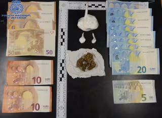 Los agentes efectuaron un registro del vehículo y hallaron otras dos papelinas de cocaína dispuestas para la venta, cuatro teléfonos móviles, cinco cogollos de marihuana con un total de 1,865 gramos y un porro, así como 385 euros.