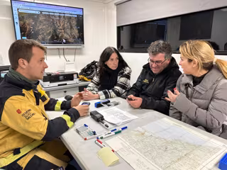 El conseller de Agricultura, Pesca y Medio Natural, Joan Simonet, junto a la alcaldesa de Andratx, Estefanía Gonzalvo, en el puesto de mando, pendientes de la evolución del incendio forestal - CAIB