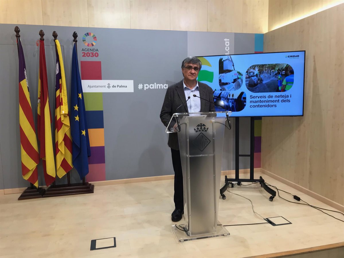 La Empresa Municipal de Agua y Alcantarillado de Palma (Emaya) ha duplicado este 2023 la financiación para la limpieza de contenedores y sus áreas, con un presupuesto de 1,79 millones de euros, según ha informado el presidente de Emaya, Ramon Perpiny, este viernes en rueda de prensa.