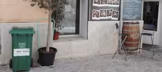 Contenedor de vidrio en el exterior de un establecimiento del centro histórico de Palma. - EMAYA