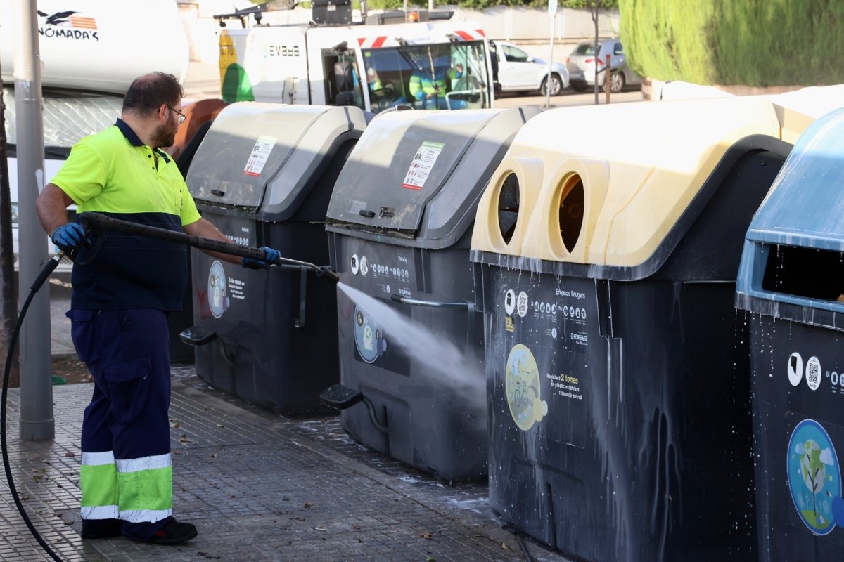 Archivo - Técnico de Emaya limpiando los contenedores con agua a presión - AYUNTAMIENTO DE PALMA - Archivo