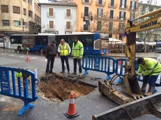 La incidencia se ha producido sobre las 9 de la mañana en la confluencia de la calle Sant Jaume con Joan Carles I y, si bien se trata de una canalización de escaso caudal, los operarios de la empresa municipal han tenido que excavar una zanja en el asfalto par poder acceder al punto exacto de la rotura y llevar a cabo los trabajos de reparación.