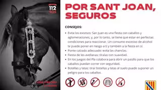 En este sentido, han recomendado respetar los caballos y jinetes, llevar calzado adecuado y evitar las chanclas, colaborar para abrir un pasillo para que los caballos y sus jinetes puedan correr con seguridad y espectacularidad durante los 'Jocs des Pla' y evitar el consumo excesivo de alcohol, ya que al tratarse de una fiesta con caballos y aglomeraciones, se tiene que estar en perfectas condiciones para reaccionar.