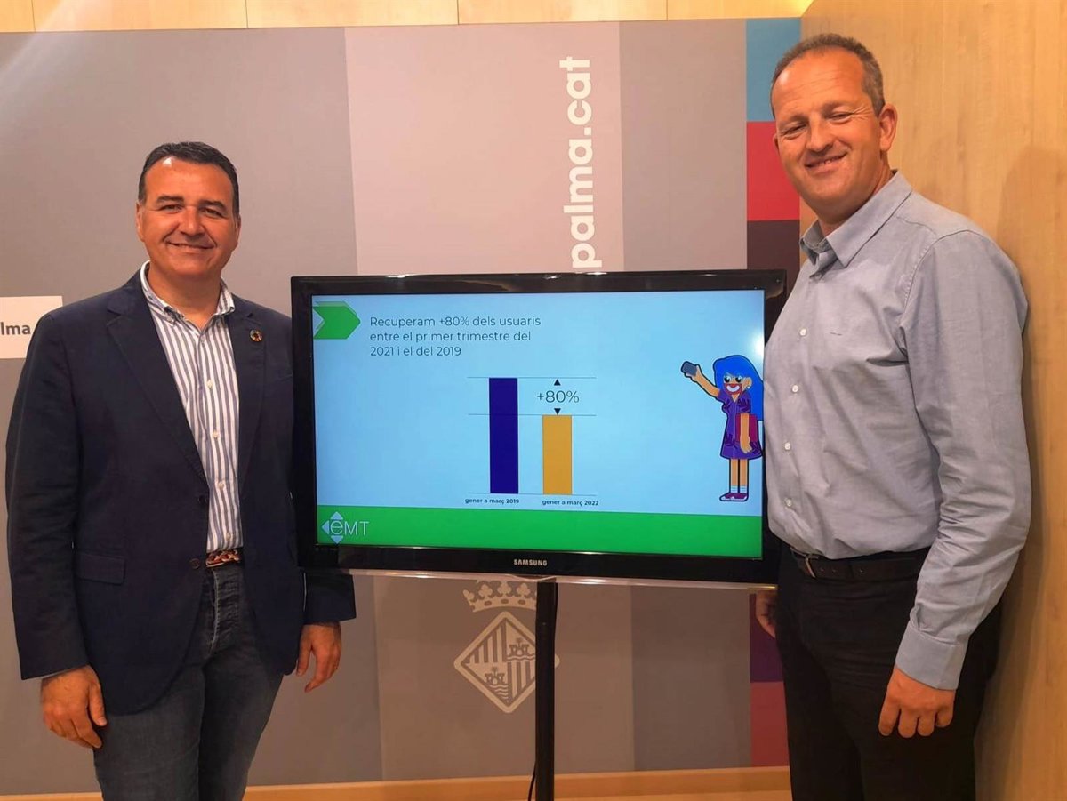 La Empresa Municipal de Transportes (EMT) de Palma recuperó en marzo más del 80 por ciento de los pasajeros respecto a las cifras de 2019, lo que implica que el volumen de pasajeros sea cada vez más similar al de antes de la pandemia.