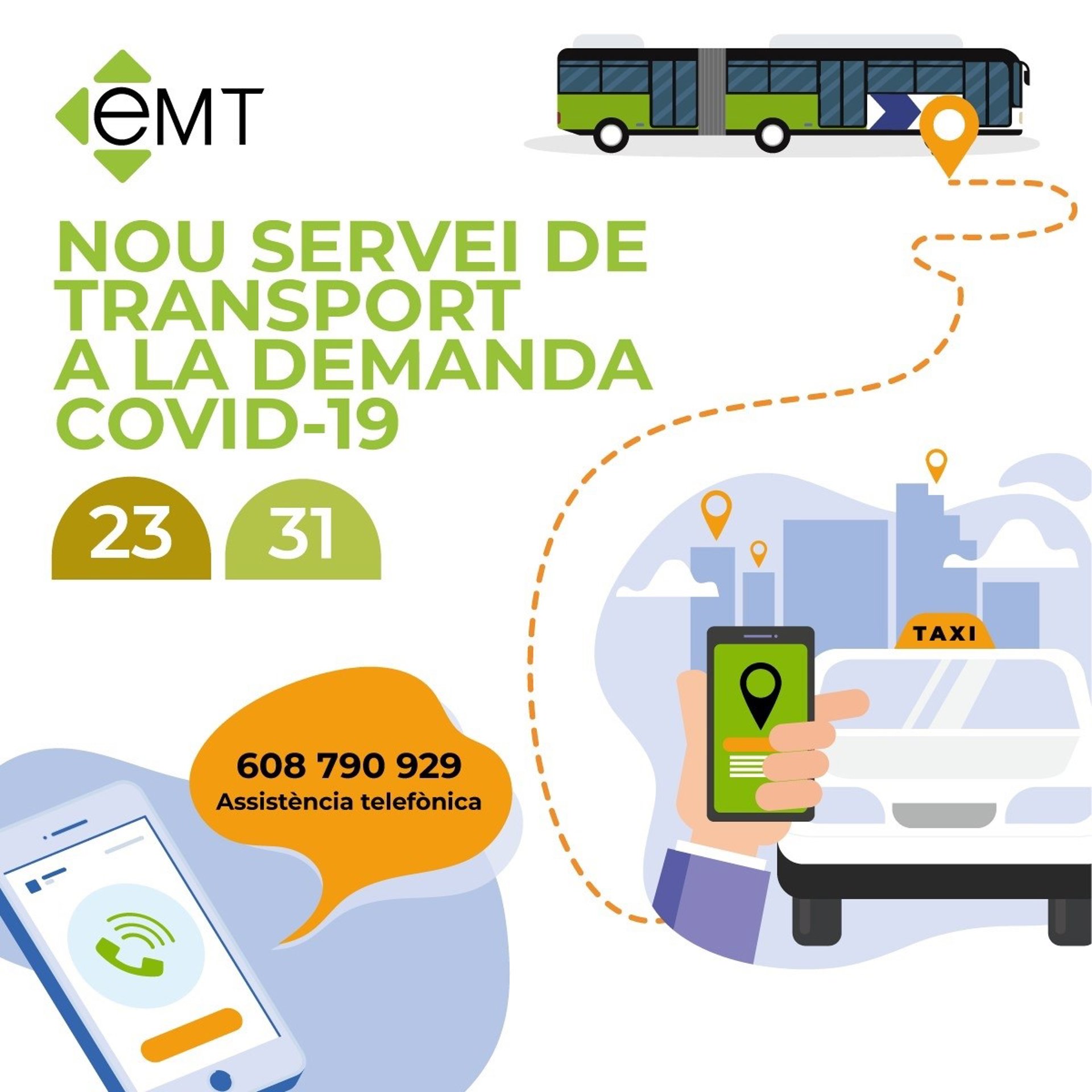 La Empresa Municipal de Transportes (EMT) ha puesto en marcha el servicio de transporte a demanda diariamente en la L31 (Sant Jordi-Sindicat) y durante los fines de semana y festivos a L23 (S'Arenal-parque Aqutic- plaza de España), gracias a la colaboración entre la empresa municipal con el área de Movilidad Sostenible, la plataforma Spare y el sector del taxi.