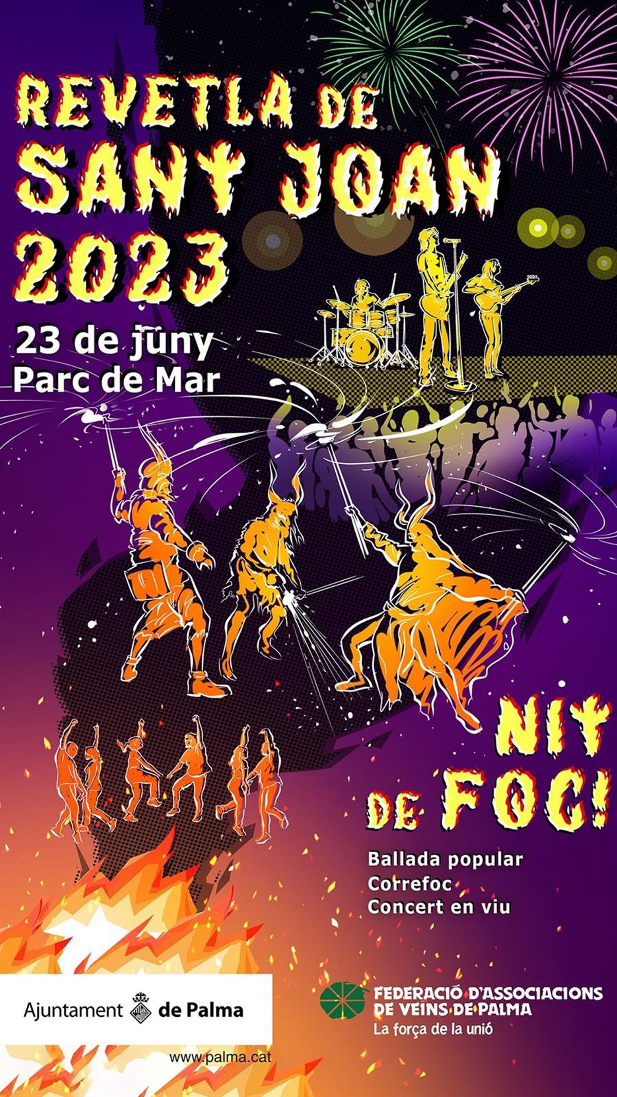 Diversas 'colles de dimonis' participarán en las actividades de la noche de Sant Joan de Palma, que se desarrollarán en el Parc de la Mar, donde también habrá actuaciones musicales o 'ball de bot', y agentes de la Policía Local y Medio Ambiente velarán por la seguridad del nido de la tortuga marina de Can Pere Antoni.