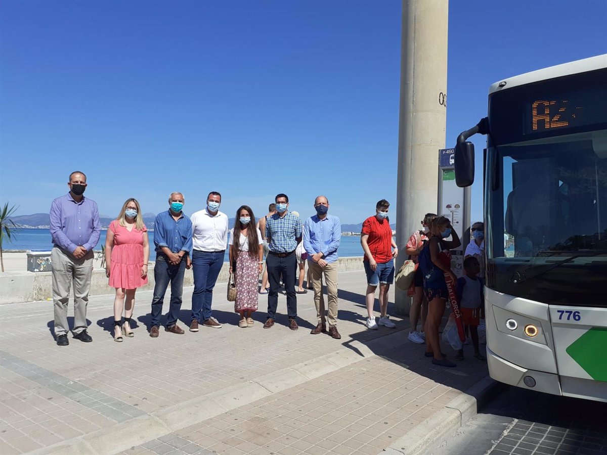 El teniente de alcalde de Movilidad Sostenible, Francesc Dalmau; el regidor del Distrito Playa de Palma y Pla de Sant Jordi, Rodrigo Romero; la directora general del área, Irene Nombela; el gerente de la EMT, Mateu Marcús; el gerente del Consorcio de Transportes de Mallorca, Johannes van Bemmelen; y la gerente de la Asociación Hotelera de Playa de Palma, Patricia Lliteras; han dado a conocer la ampliación del recorrido.