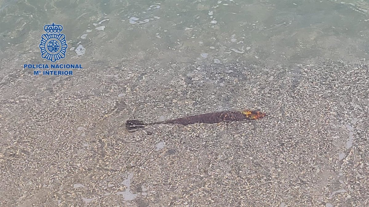 El proyectil de la Guerra Civil en la orilla de la playa del Molinar (Palma). - POLICÍA NACIONAL