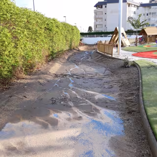 Estas lluvias han puesto de manifiesto la "chapucera" construcción de esta instalación, ya que se han desplazado trozos de corteza, arena y tierra y se ha evidenciado su "defectuoso" diseño y acabado.