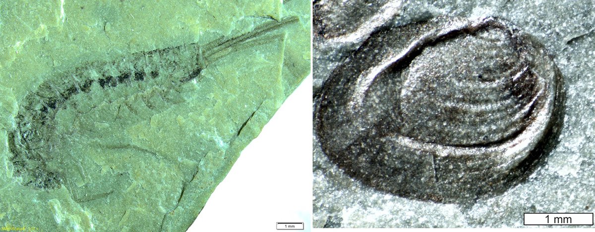 Concretamente, se han identificado cuatro especies de ninfas y dos adultos de efemerópteros (unos insectos emparentados con las libélulas), alas de cucaracha y un pez. También abundan los concostráceos, unos crustáceos cuyo aspecto recuerda al de una pequeña almeja, aunque no están emparentados con los bivalvos.