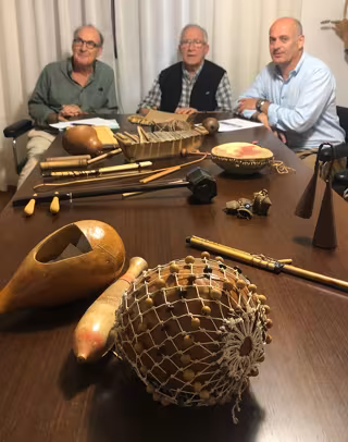 Para comenzar las acciones, el alcalde de Escorca, Antonio Solivellas, y el director del Centro UNESCO, Oscar Pikin, entregaron al Prior de Lluc, Ricard Janer, doce instrumentos de percusión de diferentes países para iniciar la sala-exposición interactiva de instrumentos musicales.