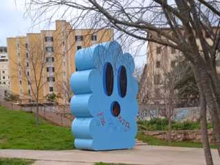 La escultura de Albert Pinya 'Nuvolet', ubicada en el parque del Canódromo ha vuelto a aparecer vandalizada y los operarios de Emaya ya la han limpiado.
