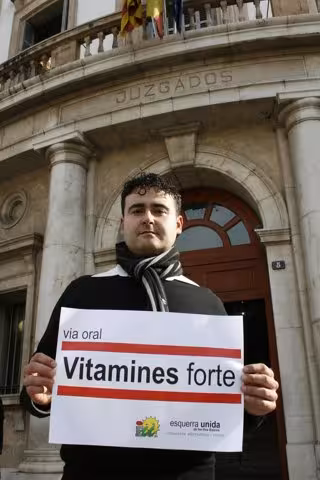 El coordinador de Esquerra Unida en Baleares, Manel Carmona, hizo hoy la entrega simbólica de vitaminas como regalo de los Reyes Magos a la Fiscalía y los Juzgados de las Islas a las puertas de los juzgados de la Vía Alemana de Palma.