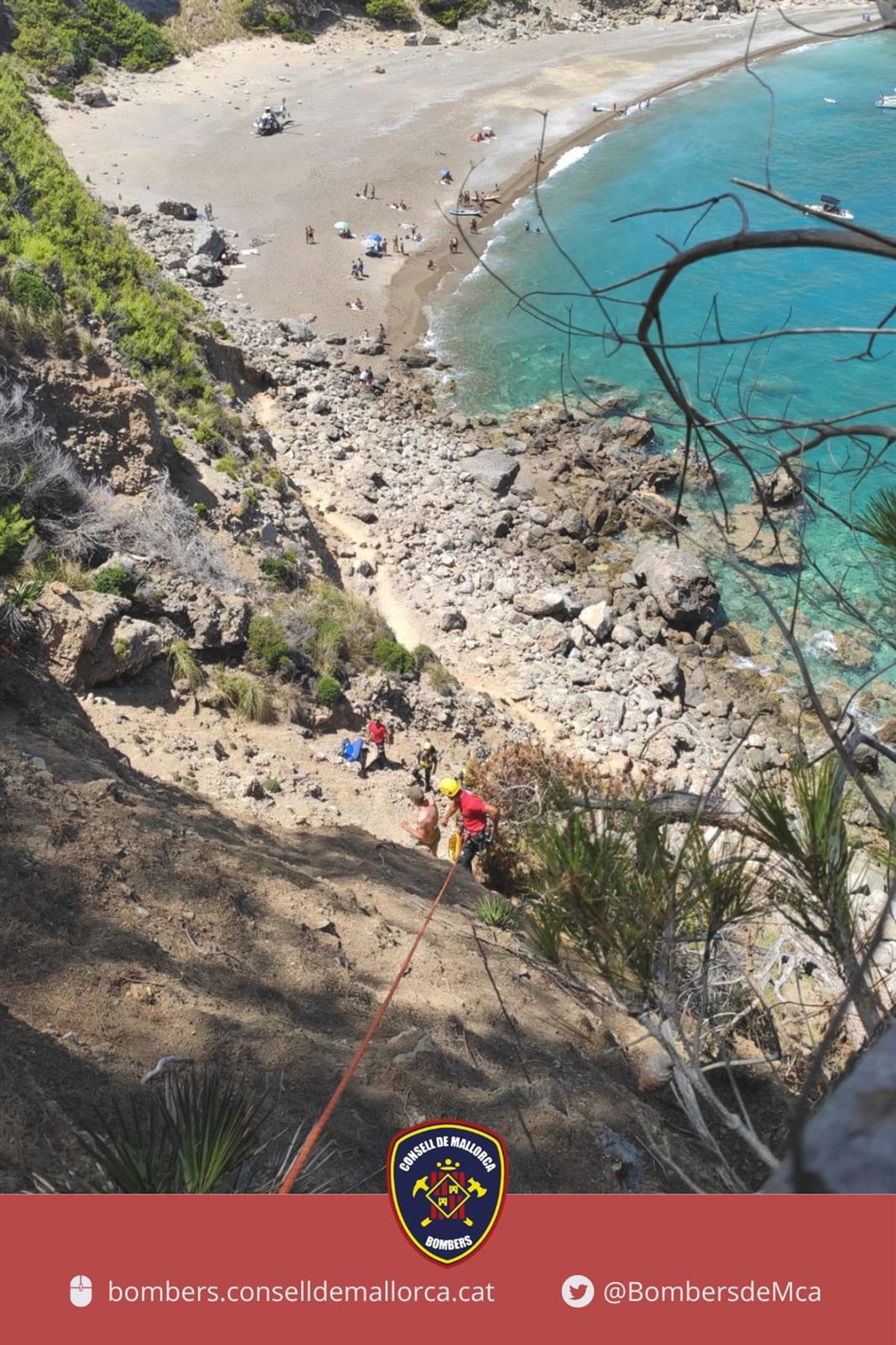 Bomberos de Mallorca han rescatado a un hombre francés que se había caído por un acantilado en el Coll Baix (Mallorca).