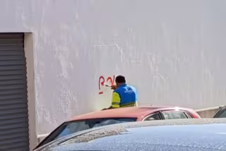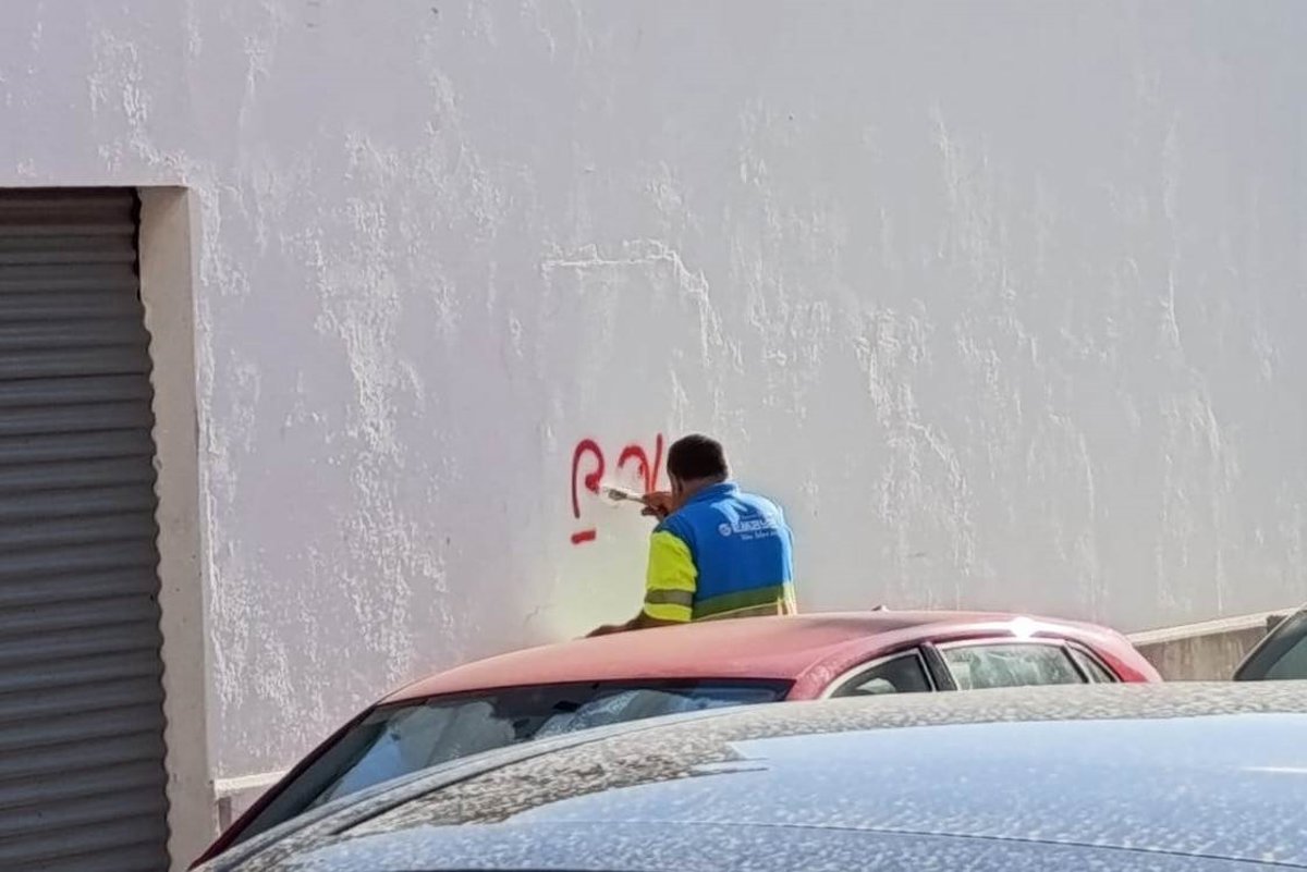 Archivo - Operario de Emaya retira una pintada en el Lluís Sitjar - CORT - Archivo