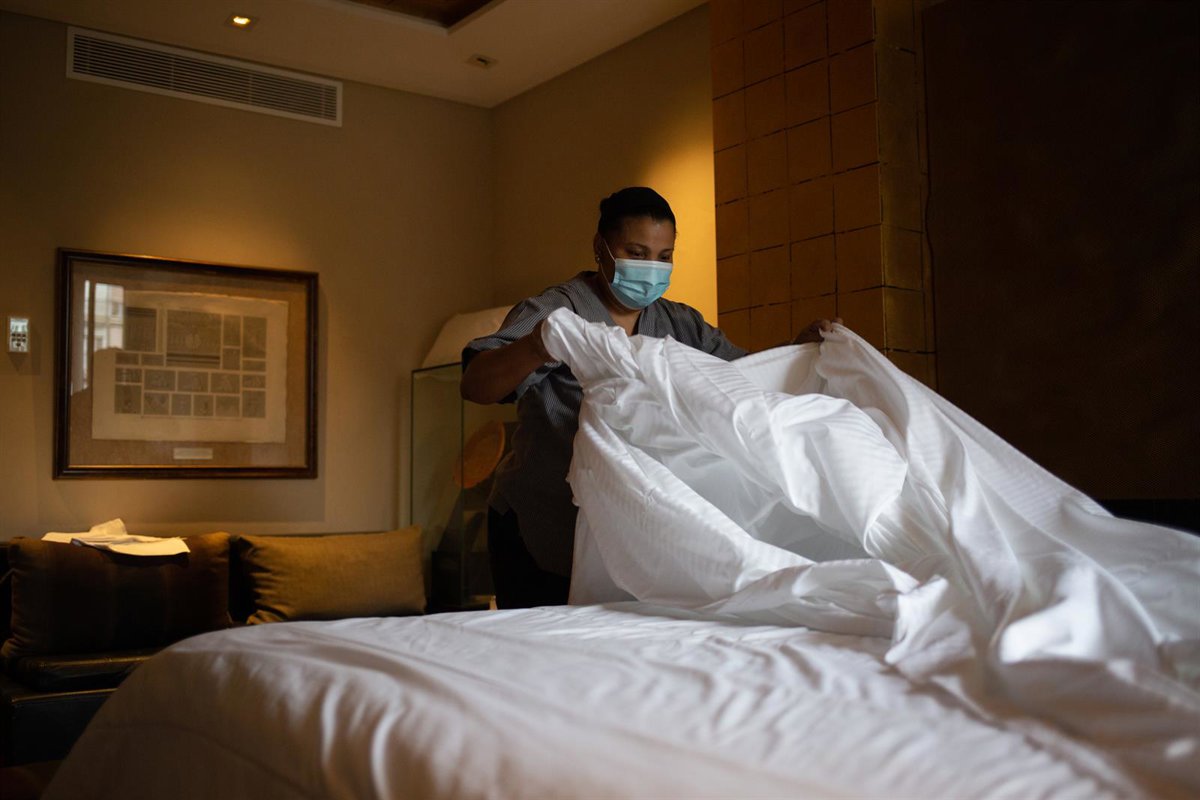 Archivo - Una camarera de pisos cambia las sábanas de una cama en una habitación de hotel. - David Zorrakino - Europa Press - Archivo