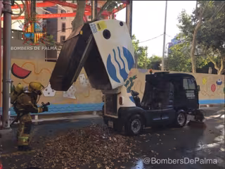 Los Bomberos de Palma han extinguido a las 08.15 horas de este sábado el fuego de una barredora de Emaya frente a la comisaría de Policía del Paseo de Mallorca.