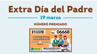 Cupón con el número premiado en el sorteo Extraordinario del Día del Padre. - ONCE