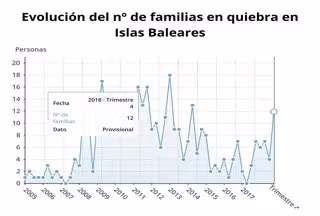 Las familias y empresas de Baleares que se declararon en concurso de acreedores (suspensión de pagos y quiebras) en el cuarto trimestre de 2018 ante la imposibilidad de afrontar sus pagos y deudas sumaron un total de 46 deudores concursados, lo que representa un aumento del 64,3 por ciento respecto al mismo periodo del año anterior.