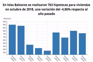 El número de hipotecas dirigidas a las viviendas alcanzó en el mes de octubre de 2018 las 763 hipotecas Baleares, lo que supone una bajada del 4,9 por ciento respecto al mismo periodo del año anterior, según datos publicados este miércoles por el Instituto Nacional de Estadística (INE).