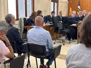 En la primera fila del banquillo de acusados, el exalcalde de Felanitx Gabriel Tauler, y el exconcejal de Playas Juan Ramón Vidal, sentados para el juicio en la Audiencia Provincial por el presunto amaño de un concurso en 2014. - EUROPA PRESS