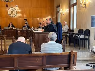 En el banquillo, los dos hombres acusados de organizar el asalto a una finca en Porreres en 2018. Tras los abogados, en una butaca, el propietario, acusado por homicidio por disparar a uno de los ladrones. - EUROPA PRESS
