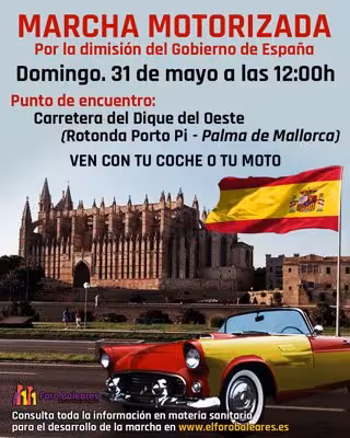 Foro Baleares de la Solidaridad y del Progreso ha convocado este domingo, 31 de mayo, a las 12.00 horas en Palma una manifestación con coches y motos bajo el lema 'Gobierno Dimisión', para expresar su desacuerdo con la gestión del Ejecutivo central.