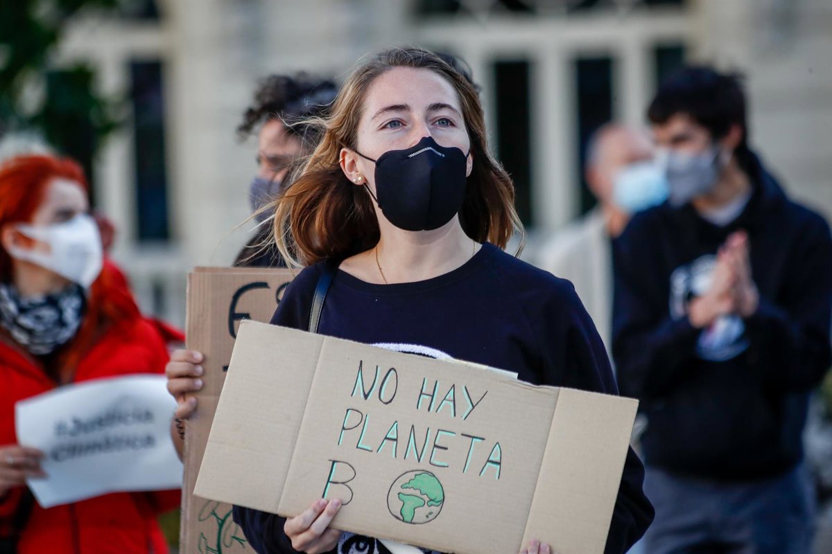 Archivo - Un grupo de personas participa en la sentada ante el Congreso de los Diputados convocada con motivo del Día Global de Acción por el Clima, en Madrid (España), a 25 de septiembre de 2020. - Óscar J.Barroso - Europa Press - Archivo