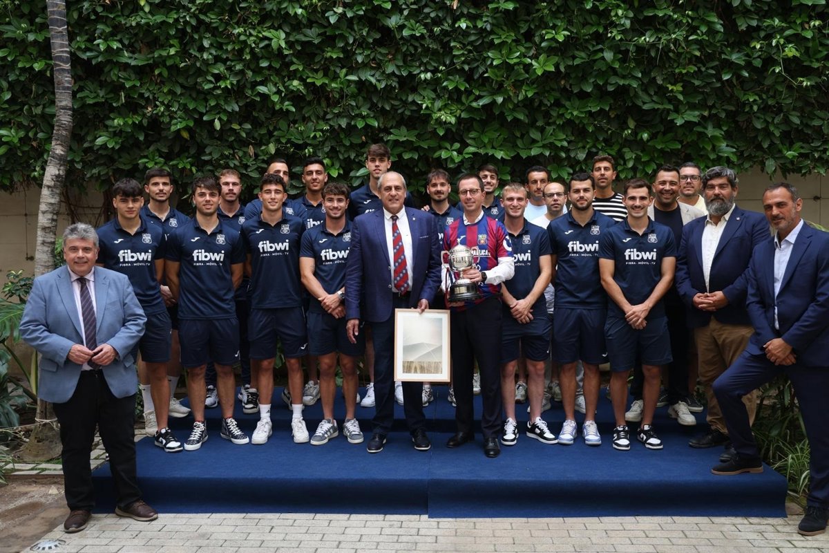 El presidente del Consell de Mallorca, Llorenç Galmés, han recibido este miércoles en audiencia la directiva, técnicos y jugadores de la UD Poblense, por haber conseguido el ascenso a Segunda División RFEF y haber quedado campeones de Tercera RFEF por cuarta vez.