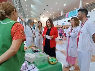 El acto ha contado con la presencia de la consellera de Salud, acompañada por la directora gerente del Hospital, Soledad Gallardo, y el resto del equipo directivo del centro, que han visitado las distintas mesas informativas instaladas en el vestíbulo principal del Hospital.
