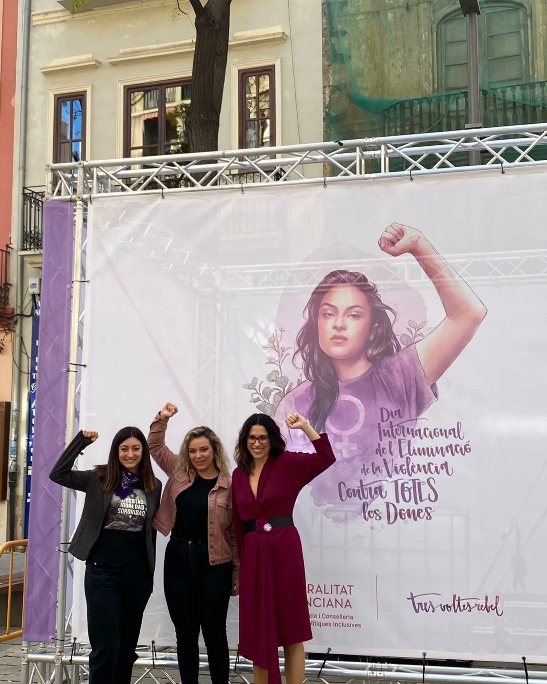 "La ilustradora @tres.voltes.rebel no pudo realizar su campaña del 25N por negarse a incluir un elemento transexcluyente. Por eso desde la Conselleria de Igualdad y Políticas Inclusivas hemos querido darle visibilidad a su trabajo. Y hacerlo aquí, junto a la memoria de Margarida Borrs. En la Comunidad Valenciana la LEY TRANS ES LEY. Y seguiremos luchando por la libertad de TODAS las mujeres", reza el texto.