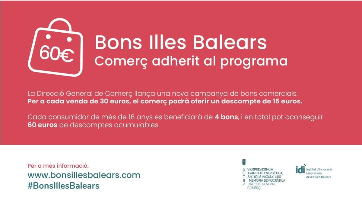 El Govern ha realizado ya el abono de la primera campaña Bons Illes Balears 2023 a los establecimientos adheridos que, en esta ocasión, ha alcanzado la cifra récord de 1.010 comercios en las Islas, por valor de medio millón de euros.