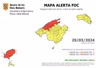 Igualmente, el departamento ha activado la Alerta Fuego 2 para Mallorca, Menorca y Formentera, donde ha recomendado evitar hacer uso del fuego o hacerlo con la máxima precaución.