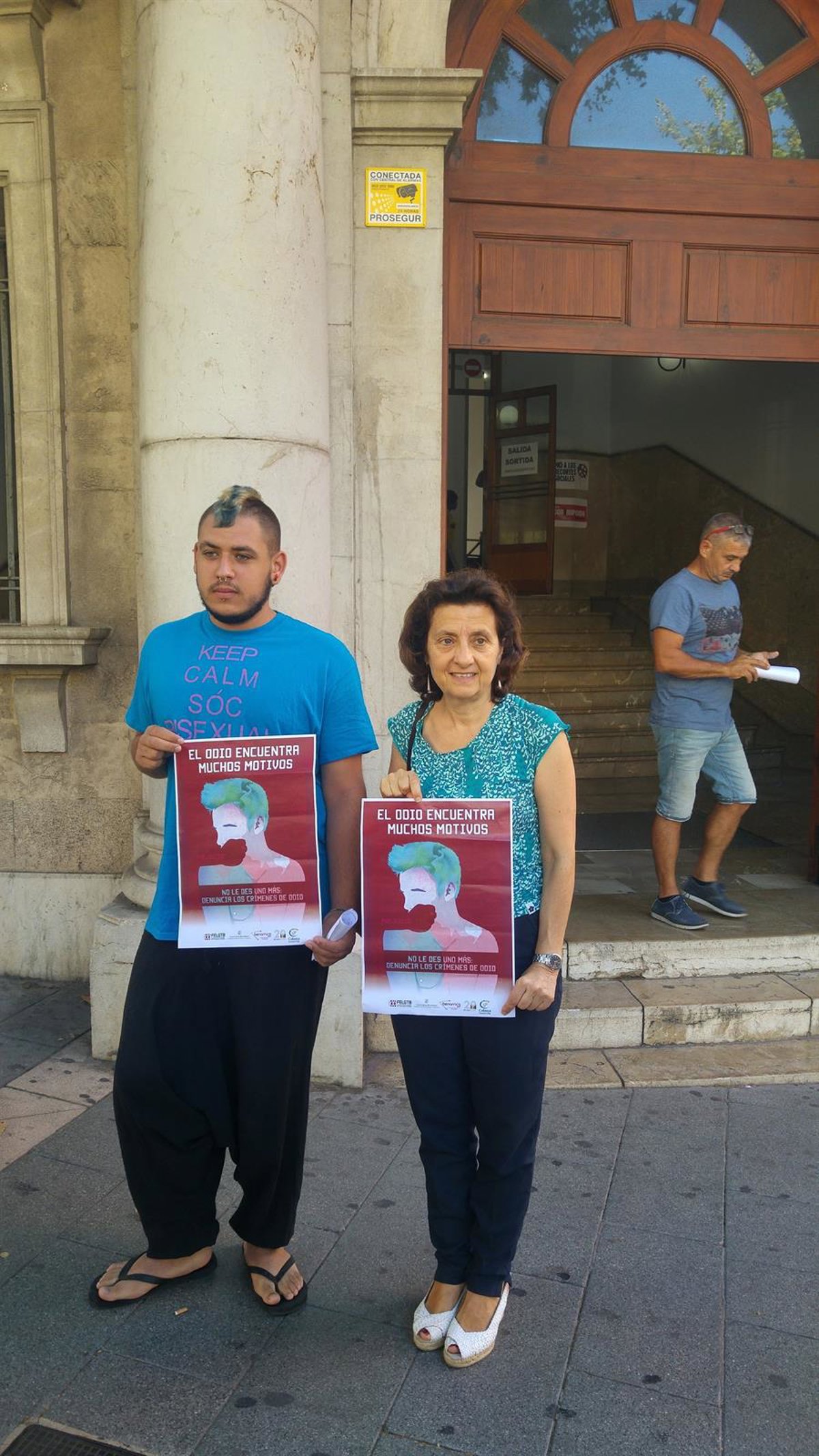 La Consellera de Servicios Sociales y Cooperación, Fina Santiago y el presidente de la asociación de las Illes Baleares Ben Amics, Jan Gómez, han presentado este lunes en los Juzgados de Palma una campaña para animar a denunciar los delitos de odio por identidad y orientación sexual.